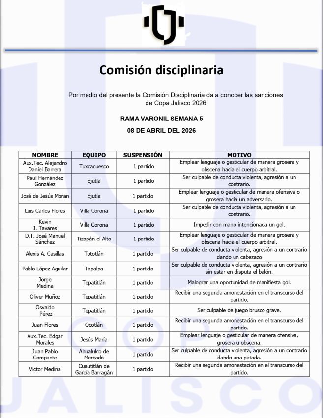 Sanciones semana 5